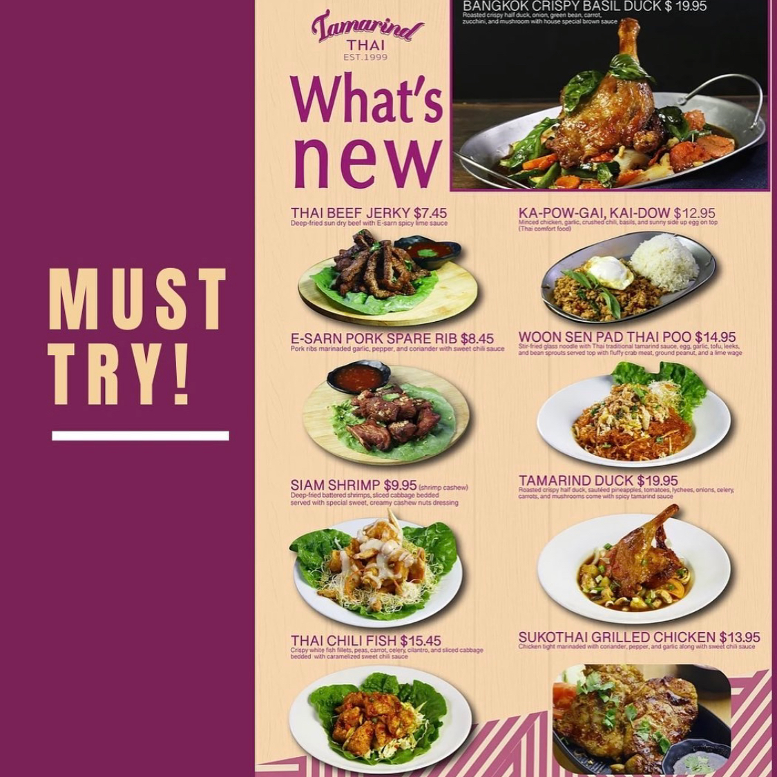 Welcome to Tamarind Thai Restaurant, a culinary gem nestled in La Mesa, California. Here, the vibrant flavors of Thailand come alive through a meticulously curated menu that caters to every palate. Begin your dining experience with a fragrant bowl of Tom Kha or the spicy Tom Yum soup, both available in vegetarian options. Dive into the refreshing Yum Thai-style salads, where grilled beef and cooked chicken mingle with zesty lime sauces.